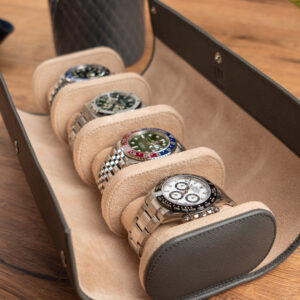 Saffiano leather is a highly durable, scratch-resistant material which repels water and stains making it easy to clean. Most of all, it is an absolutely unmistakable hallmark of quality leather products, which makes it perfect to keep your watches safe and allows our luxury watch rolls to become your perfect travel companion.